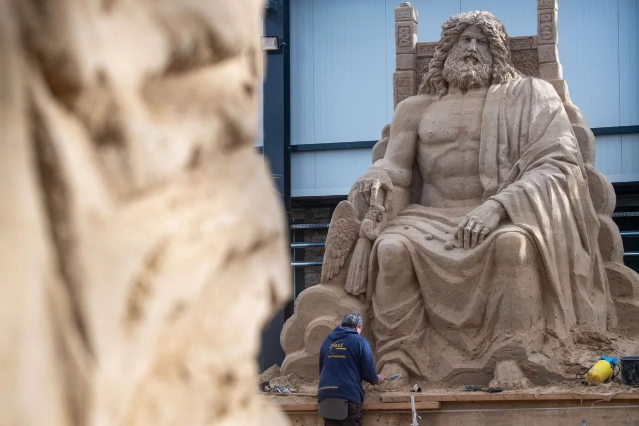 Vom antiken Göttervater Zeus bis hin zum Astronauten der Neuzeit reicht das Spektrum der Motive, die in der neuen Sandskulpturen-Ausstellung in Prora am Rande des Ostseebades Binz zu sehen sind.
