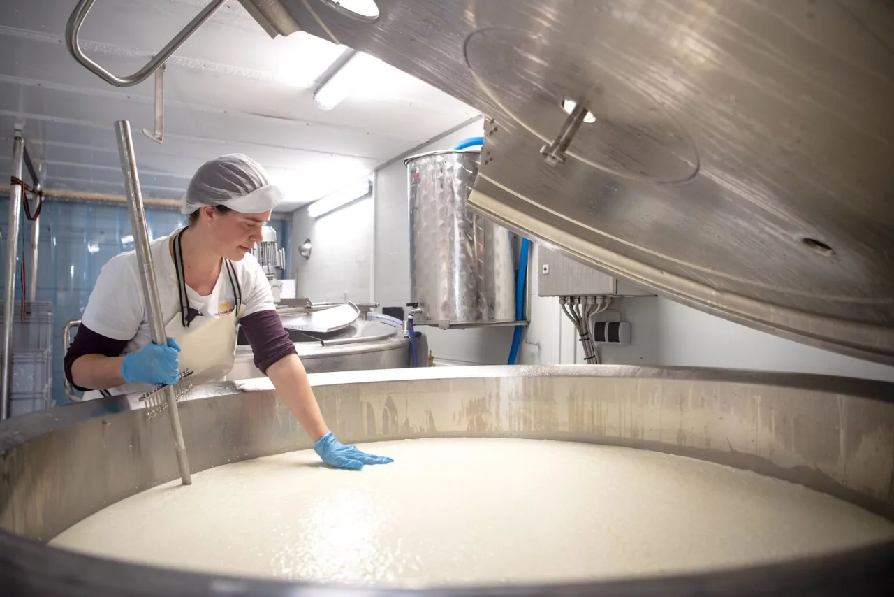 An diesem Vormittag ist «Heidi's mobile Käserei» auf einem Betrieb in der niedersächsischen Gemeinde Wilstedt im Kreis Rotenburg. Kurz nach der Ankunft fließen rund 1000 Liter Milch durch Schläuche in einen großen Edelstahlbehälter, der im Innenraum des Lastwagens steht. Es brummt, manchmal zischt es. Routiniert drückt die 39-Jährige verschiedene Knöpfe an der Anlage, dann kontrolliert sie die Temperatur der Milch im Käsekessel.