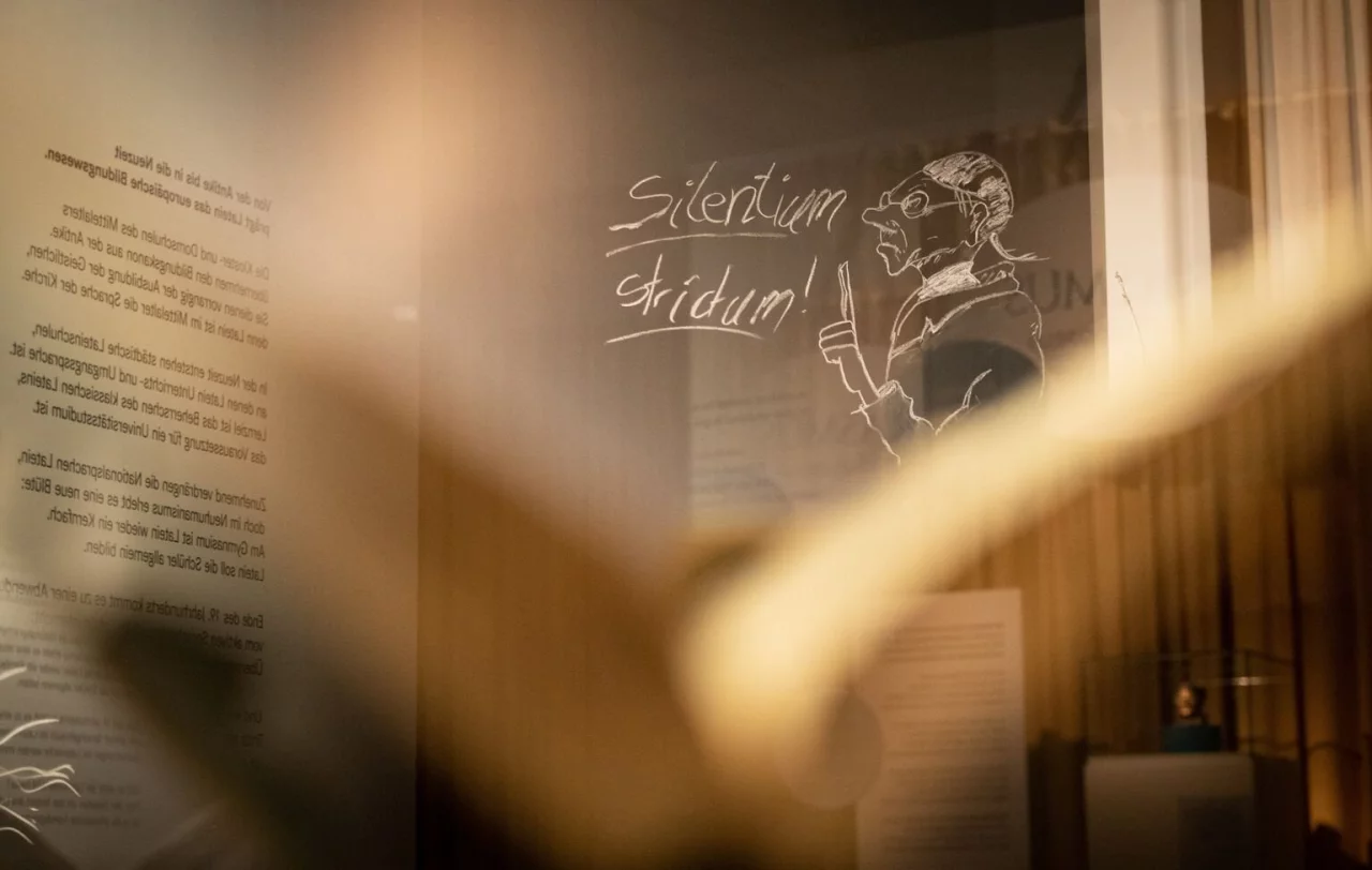Besucherinnen und Besucher begegnen auch dem widerspenstigen Comic-Gallier Asterix. Die mehr als 200 Exponate zeigen, dass es sogar Kinder- und Jugendbücher wie «Grecs Tagebuch» oder «Die drei Fragezeichen» in lateinischer Übersetzung gibt, zudem lateinische Brett- oder Kartenspiele. Wie es vor Jahrhunderten mit dem Latein-Unterricht ausgesehen haben mag, wird ebenfalls anschaulich - ein Vokabelheft aus dem 9. Jahrhundert lässt auf außerordentliche Schülerdisziplin schließen.