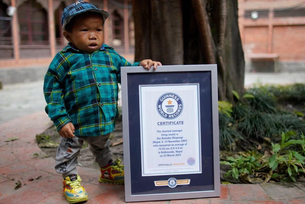 Dor Bahadur Khapangi sei 73,43 Zentimeter groß - so steht es auf dem Guinness-Zertifikat, das ihm ein Vertreter des nepalesischen Tourismusministeriums bei einer Veranstaltung am Dienstag überreichte. Der Ministeriumsvertreter sagte der Deutschen Presse-Agentur, dass man das Zertifikat zuvor von Guinness erhalten habe. Bei der Veranstaltung waren mehrere Fotografen dabei.