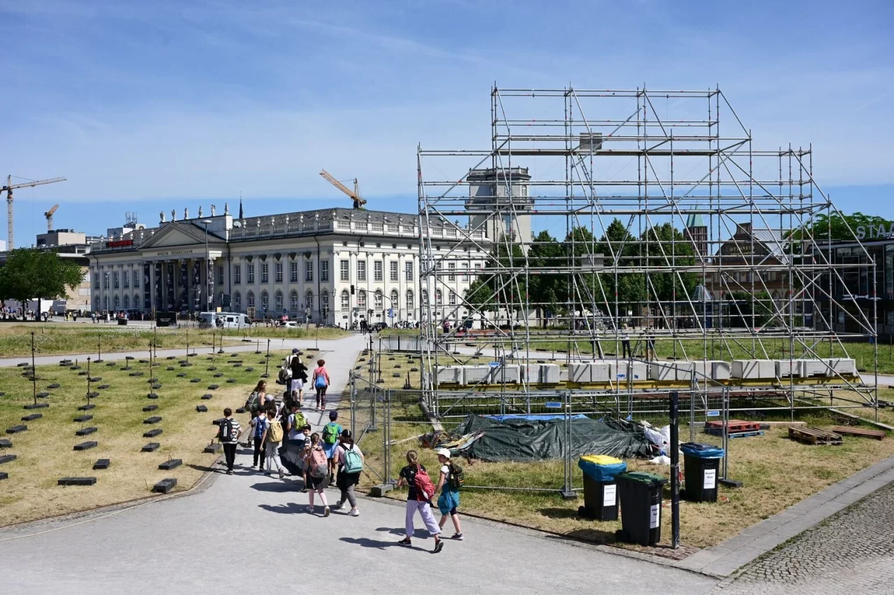 Am Dienstag war das Banner «People's Justice» des Künstlerkollektivs Taring Padi wegen antisemitischer Bildsprache abgehängt worden. Der Druck auf die Verantwortlichen ist auch weiterhin groß.