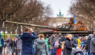 Aus Protest gegen den Krieg in der Ukraine haben Demonstranten am Donnerstag die Straße vor der russischen Botschaft in London in den Farben der ukrainischen Flagge eingefärbt. Auf Videos, die im Internet kursierten, war zu sehen, wie Menschen in Overalls mit Schubkarren gelbe und blaue Farbe verschütteten, die von anderen mit Besen verteilt wurden. Die Farbe wurde anschließend von vorbeifahrenden Autos großflächig verteilt.
