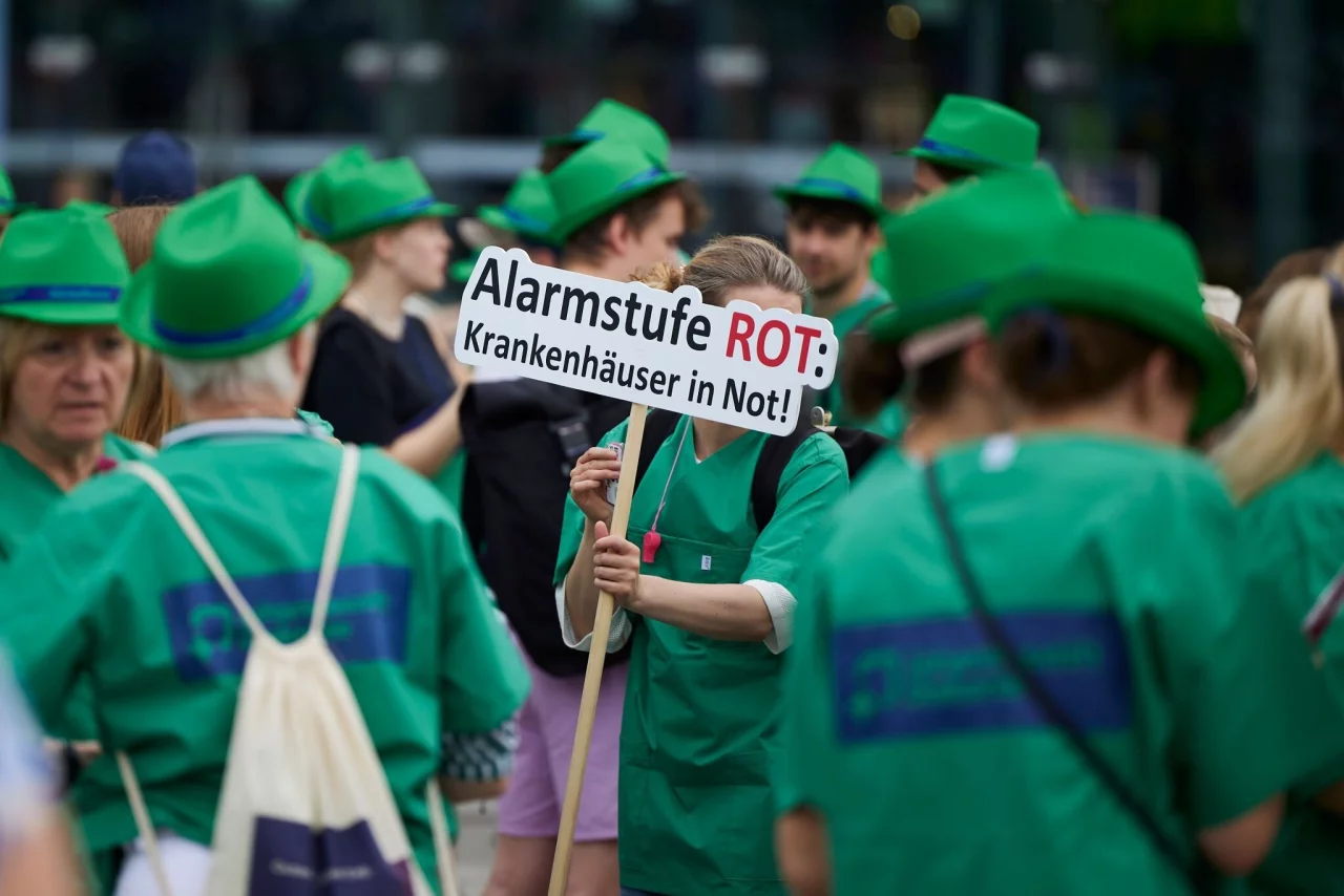 Bei dem Aktionstag mit dem Motto «Alarmstufe rot - Krankenhäuser in Not» wollten Kliniken bundesweit auf ihre ernste Lage aufmerksam machen. An einer zentralen Kundgebung in Berlin nahmen nach Angaben der Polizei rund 500 Menschen teil. Aktuell dürften sich 20 bis 30 Prozent der Kliniken mit der Frage der Insolvenz befassen, hatte die Interessenvertretung bereits gewarnt. Gaß nannte es inakzeptabel, dass sich im Bundesetat von 500 Milliarden Euro keine 10 Milliarden Euro zum Erhalt der flächendeckenden Krankenhausversorgung fänden.