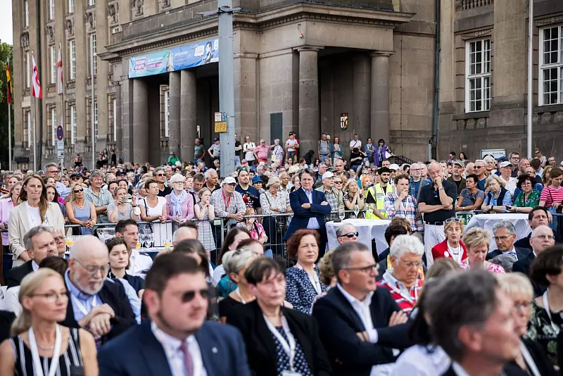 Der Platz davor trägt heute seinen Namen. Am Samstag (24. Juni) erinnerte Berlin dort mit einem Bürgerfest an den Kennedy-Besuch und die berühmte Rede. Vor 60 Jahren standen die Menschen eng gedrängt vor dem Rathaus, damals Sitz des West-Berliner Senats und Tagungsort des Landesparlaments. Einige hatten auf Luftmatratzen dort übernachtet, nur um den US-Präsidenten sehen zu können. Ganz so groß war die Euphorie beim Bürgerfest nun nicht - es kamen einige Hundert Menschen. Jedes «Ich bin ein Berliner» von der Bühne wurde aber kräftig bejubelt.