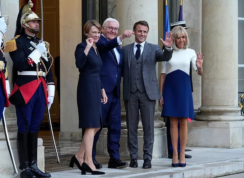 Der Bundespräsident wurde von seiner Frau Elke Büdenbender nach Paris begleitet. An dem Gespräch mit Macron am Abend nahm auch dessen Frau Brigitte teil. Sie wäre Anfang Juli auch mit nach Deutschland gekommen.