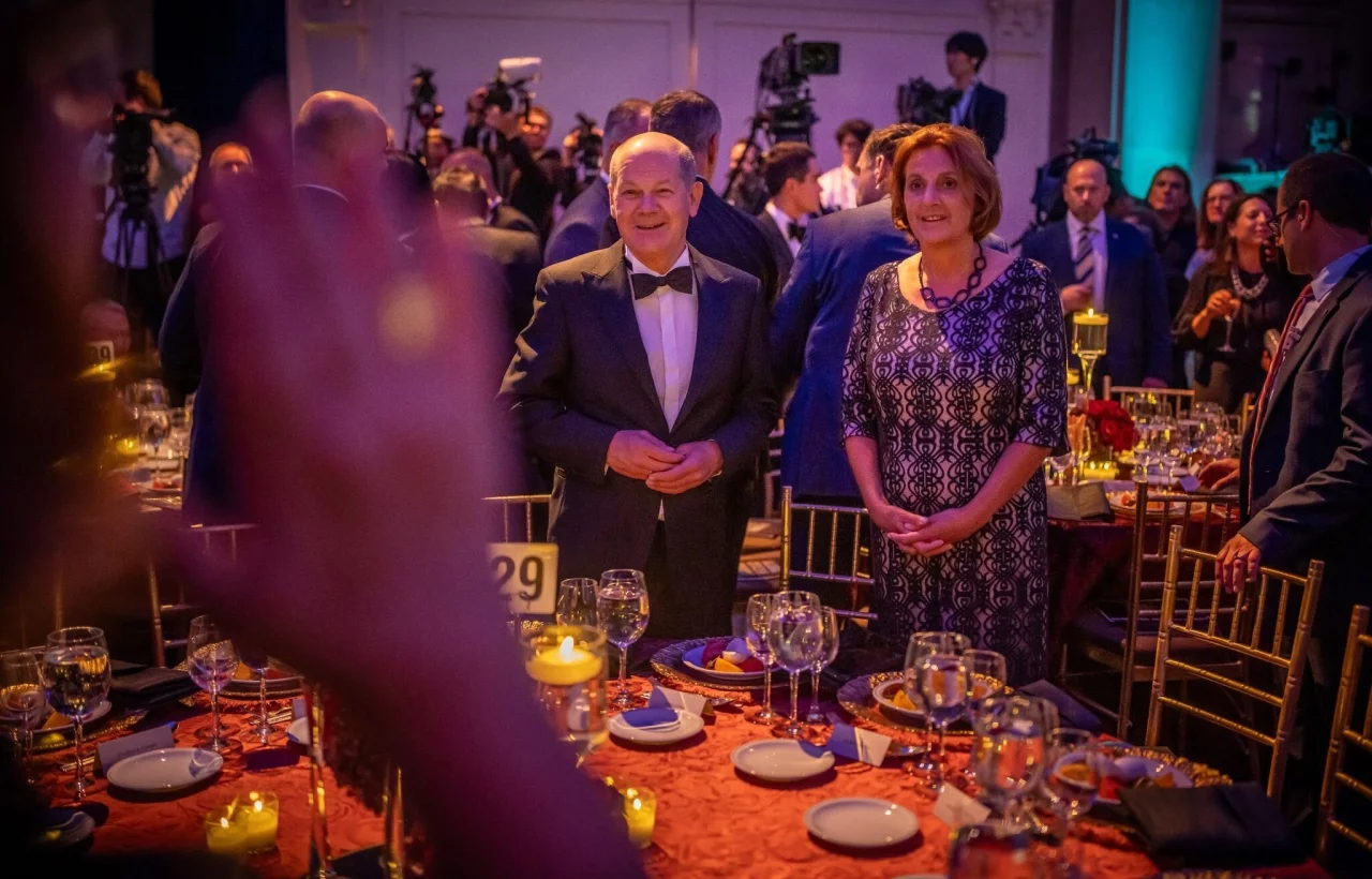 Weitere Preisträger waren in diesem Jahr der japanische Ministerpräsident Fumio Kishida, US-Finanzministerin Janet Yellen und der Chef der First Eastern Investment Group, Victor Chu. Die Preisverleihung bildete den Abschluss des dreitägigen Aufenthalts des Kanzlers in New York, seiner zweiten Dienstreise als Regierungschef, bei der er von seiner Ehefrau Britta Ernst begleitet wurde.