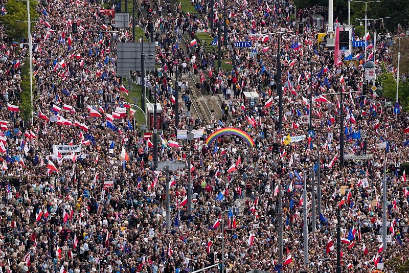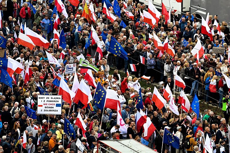 Zwei Wochen vor der Parlamentswahl in Polen haben am Sonntag rund eine Million Menschen gegen die Politik der nationalkonservativen Regierungspartei PiS demonstriert. Dies sei die größte Demonstration in der Geschichte Warschaus, sagte eine Sprecherin der Stadtverwaltung dem Portal Onet.pl.