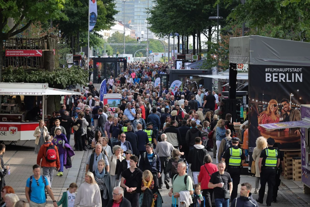 Bei dem Fest rund um Rathaus und Binnenalster will sich die Stadt mit rund 400 Partnern und Akteuren in einem bunten Programm als vielfältige, nachhaltige, welt- und zukunftsoffene Metropole präsentieren. Schon am Vormittag nutzten zahlreiche Besucher das gute Wetter, um sich zu informieren oder mit dem Bürgermeister in der Mönckebergstraße - einer bekannten Einkaufsstraße - ein Selfie zu machen, wo sich die anderen 15 Bundesländer präsentieren. Insgesamt werden zu dem Fest unter dem Motto «Horizonte öffnen» Hunderttausende Besucherinnen und Besucher in der Hansestadt erwartet.