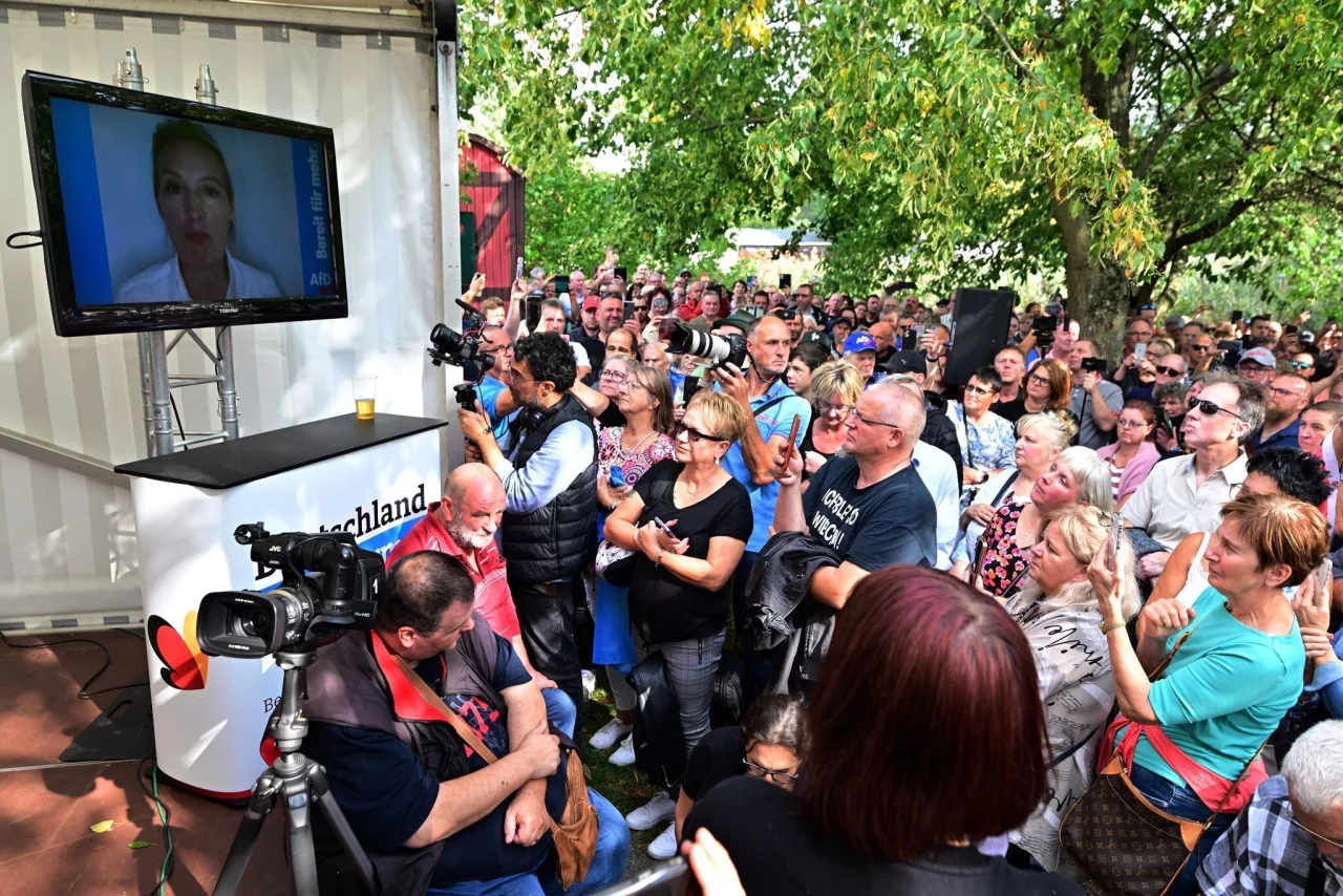 Die AfD hatte Weidel als Hauptrednerin zum Tag der Deutschen Einheit in Mödlareuth geladen - einem Ort, der sowohl in Bayern als auch in Thüringen liegt und durch den früher die innerdeutsche Grenze verlief. Der Termin sollte der Höhepunkt des AfD-Wahlkampfes in Bayern sein.