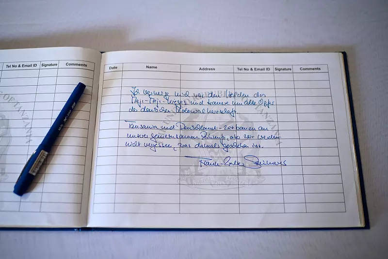 Steinmeier besuchte in Songea, einem der Hauptschauplätze des Krieges, das Maji-Maji-Museum und legte am Grab von Chief Songea Mbano eine rote Rose und am Sammelgrab der anderen Kämpfer einen Kranz nieder. Das Treffen mit den Nachfahren fand im kleinsten Kreis ohne Journalisten statt.