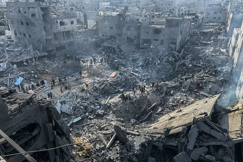 Die Gebäude, die bei einem israelischen Luftangriffen im Flüchtlingslager Dschabalia im nördlichen Gazastreifen getroffen wurden, liegen in Trümmern. - © Fadi Wael Alwhidi/dpa