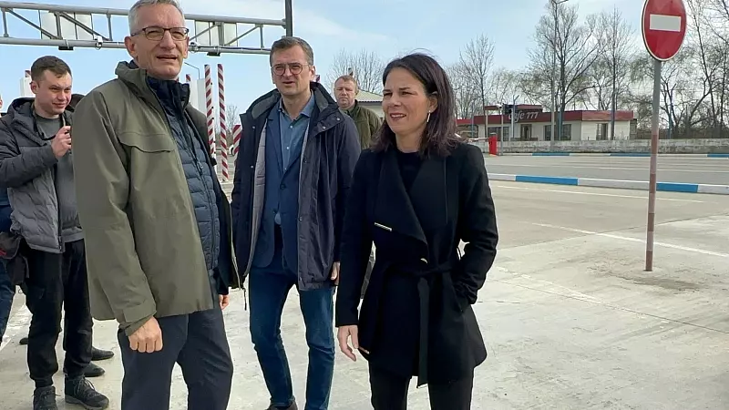 Außenministerin Annalena Baerbock ist zum zweiten Jahrestag der russischen Invasion in die Ukraine gereist. Die Grünen-Politikerin traf am Samstag gemeinsam mit dem ukrainischen Außenminister Dmytro Kuleba zu einem aus Sicherheitsgründen zunächst geheim gehaltenen Besuch in der südlichen Hafenstadt Odessa am Schwarzen Meer ein. Es ist ihre sechste Reise in die Ukraine seit Beginn des russischen Angriffskriegs.