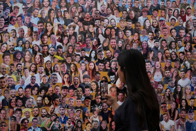 Eine Frau fotografiert eine Wand mit Porträts der Opfer am Ort des Nova-Musikfestivals. (Archivbild) - © Ariel Schalit/AP/dpa