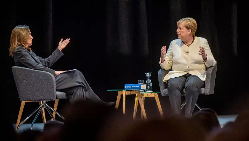 Merkel und Will sitzen sich in Berlin auf der Bühne des Deutschen Theaters in dunkelgrauen Sesseln gegenüber, neben sich jeweils ein Tischchen mit einer Karaffe Wasser. Das Licht gedimmt, im Hintergrund der schwarze Theatervorhang, davor auf blauem Hintergrund in der gleichen Farbe das überdimensionale Cover ihrer Memoiren. Denn darum geht es an diesem Abend: Die ehemalige Kanzlerin und CDU-Vorsitzende stellt rund drei Jahre nach dem Abschied aus der Politik ihre Autobiografie vor. Geschrieben hat sie das gut 700 Seiten starke Buch mit dem Titel «Freiheit. Erinnerungen 1954 - 2021» zusammen mit ihrer langjährigen Vertrauten Beate Baumann.