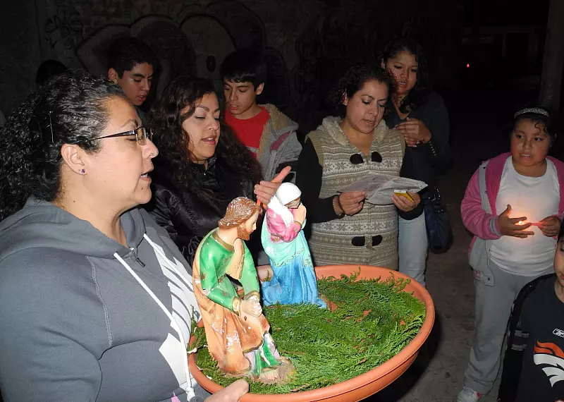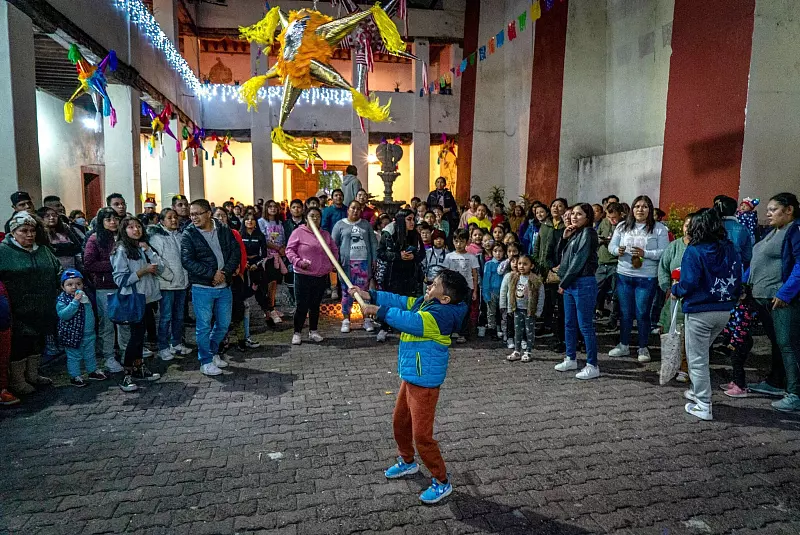 Dann wird mit Tamales - in Blättern gedämpfte Maismasse mit Fleisch und Mole-Soße aus Chili, Gewürzen und Schokolade - sowie Punsch gefeiert. Für die Kinder gibt es eine Piñata: Mit einem Stock schlagen sie so lange auf die Kugel aus Pappmaché ein, bis diese aufplatzt und die Süßigkeiten herausfallen.