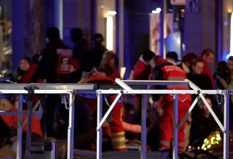 Sirenen überall, Blaulicht, Feuerwehr: Eine dpa-Reporterin berichtete, es wimmele auf dem Weihnachtsmarkt von Rettungswagen und Sanitätern. An einer großen Weihnachtspyramide wurden demnach Verletzte versorgt. Mehrere Verletzte wurden weggetragen.