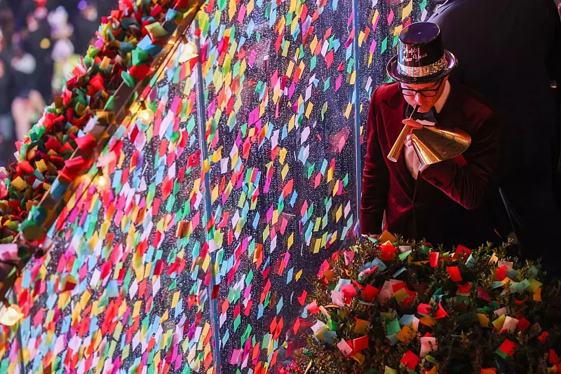 Hunderttausende Menschen haben auf dem weltberühmten Times Square in New York ins neue Jahr gefeiert. Um Mitternacht richteten sich wie in jedem Jahr alle Augen weit nach oben: Um 23.55 Uhr erklang der John-Lennon-Song «Imagine», und um 23.59 Uhr fuhr vom Dach des 26-stöckigen Hochhauses Times Square One an einer speziellen Stange eine fast 5.400 Kilogramm schwere Kugel, verziert mit 2.688 Kristall-Dreiecken, rund vierzig Meter nach unten - bis exakt um Mitternacht.