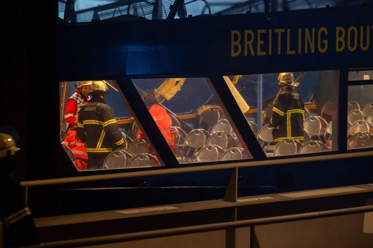 Am Morgen waren rund 55 Kräfte der Feuerwehr im Einsatz. Sie gaben auch wärmende Decken aus, denn einige der Fahrgäste wurden von Wasser nass gespritzt. «Die ganzen Scheiben sind kaputt, es kam eine Welle rein. Ich bin klitschnass und durchgefroren. Ich bin sehr schockiert», sagte eine Frau, die mit ihrem Fahrrad auf der Fähre war, um nach Hamburg zur Arbeit zu fahren.