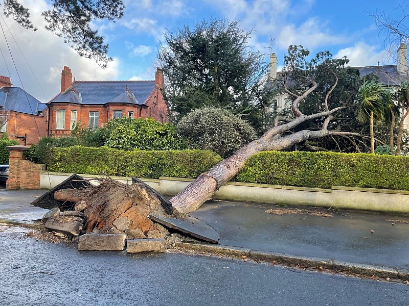 Die Aufräum- und Instandsetzungsarbeiten gingen am Wochenende voran. Am Sonntagmittag waren auf der irischen Insel dennoch noch gut 400.000 Gebäude ohne Strom. Zehntausende hatten kein Wasser. Irland war von dem Sturm am Freitag besonders heftig betroffen.