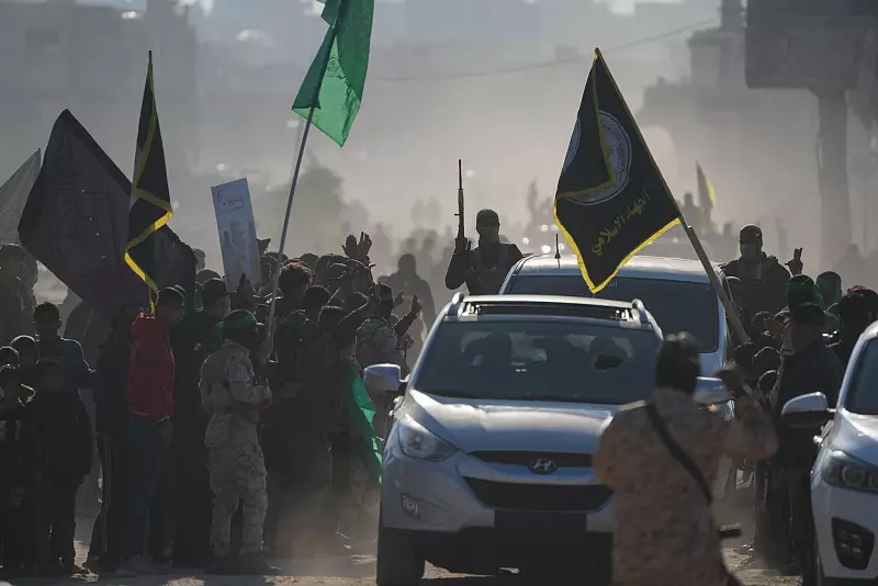 Die «Zeremonie» fand neben dem zerstörten Haus des im Oktober getöteten Hamas-Chefs Jihia al-Sinwar statt. Eine riesige jubelnde Menschenmenge drängte sich zwischen den Trümmern der Stadt um die bewaffneten und vermummten Islamisten und die Fahrzeuge mit den Geiseln.