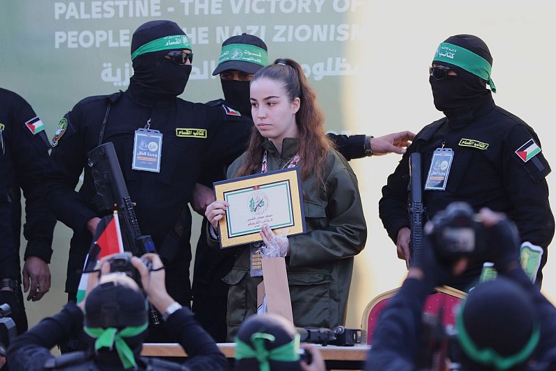 In Dschabalija im Norden des Gazastreifens wurde zuerst die 20-jährige israelische Soldatin Agam Berger Vertretern des Roten Kreuzes übergeben. Sie musste auf einer Bühne einer Menge zuwinken. Ihre Familie in Israel verfolgte die Zeremonie im Fernsehen und reagierte mit Tränen und begeistertem Jubel auf den Anblick der jungen Frau.