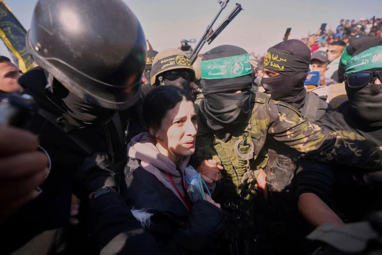 Der 80-jährige Gadi Moses und die 29-jährige Arbel Yehud sowie fünf Thailänder mussten in Chan Junis im Süden des Gazastreifens langsam durch eine aufgeheizte, dicht gedrängte Menschenmenge gehen. Auf Bildern ist der dabei von bewaffneten Islamisten begleiteten jungen Frau, die wie der 80-Jährige auch deutsche Staatsbürgerin ist, große Angst ins Gesicht geschrieben. Israelische Fernsehkommentatoren sprachen von einer «Via Dolorosa», einem Kreuzweg Jesu, den die Geiseln durch die Menge auf dem Weg in die Freiheit passieren mussten. Die 20-jährige Soldatin Agam Berger, die als Erste in Dschabalija im Norden des Gazastreifen freigelassen worden war, musste vor ihrer Übergabe auf einer Bühne den Zuschauern zuwinken.