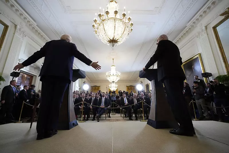 Unterstützung für seine Gaza-Pläne bekommt Trump vom israelischen Ministerpräsidenten. «Er sieht eine andere Zukunft für dieses Stück Land, das der Ursprung von so viel Terrorismus war», sagte Netanjahu bei dem gemeinsamen Auftritt mit Trump. «Das ist etwas, das die Geschichte verändern könnte.» Netanjahu schwärmte generell über Trumps Abkehr von «konventionellen Denkweisen» und dessen «frische Ideen».
