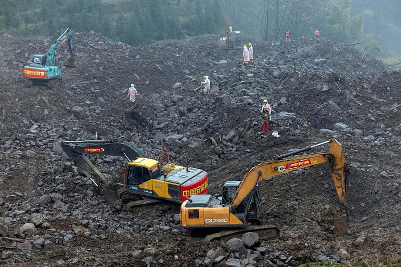 Die abgerutschte Erdmasse erstreckt sich laut den Rettungskräften über mehr als einen Kilometer und ist schätzungsweise 10 bis 20 Meter dick. Zudem bestehe die Gefahr eines weiteren Erdrutsches, erklärte ein Leiter der Bergungstrupps.