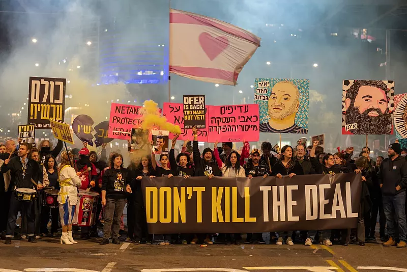Während sich Netanjahus Regierung intern über die Zukunft des Abkommens beriet, demonstrierten am Samstagabend rund 1.000 Menschen in Tel Aviv für die volle Umsetzung des Abkommens. Sie warfen Netanjahu vor, eine Fortsetzung der Waffenruhe vereiteln zu wollen, um sich an der Macht zu halten. Sie fürchten um das Schicksal der restlichen Geiseln. 73 werden noch in Gaza festgehalten, wobei 36 davon tot sind.
