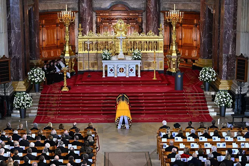 Im Dom war der Sarg mit dem Leichnam des Verstorbenen auf den Stufen zum Altarraum aufgebahrt. Er war bedeckt von einer Nationalfahne.