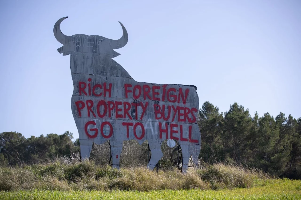 Eine Protestaktion gegen «reiche Ausländer» als mutmaßliche Preistreiber auf dem angespannten Wohnungsmarkt sorgt auf Mallorca für Aufsehen. Aktivisten der spanischen Urlaubsinsel besprühten die riesige Kultfigur eines Stieres mit der Aufschrift: «Rich Foreign Property Buyers - Go To Hell» («Reiche ausländische Immobilienkäufer - fahrt zur Hölle»).