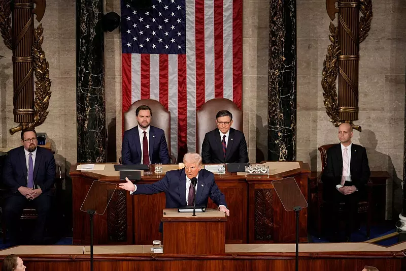 Trumps rund 100 Minuten lange Rede erinnerte an einen Wahlkampfauftritt. Häufig nutzen US-Präsidenten die erste Rede nach Amtsantritt vor dem Kongress, um den politischen Gegnern die Hand zu reichen. Nicht so Trump. Anders als sonst so häufig bei Auftritten des Republikaners schien sich der 78-Jährige ans Skript zu halten und die vorbereitete Rede weitgehend vom Teleprompter abzulesen. Wichtige internationale Themen wie der russische Angriffskrieg gegen die Ukraine oder der Zollstreit mit den Nachbarländern Kanada und Mexiko kamen nur am Rande vor.