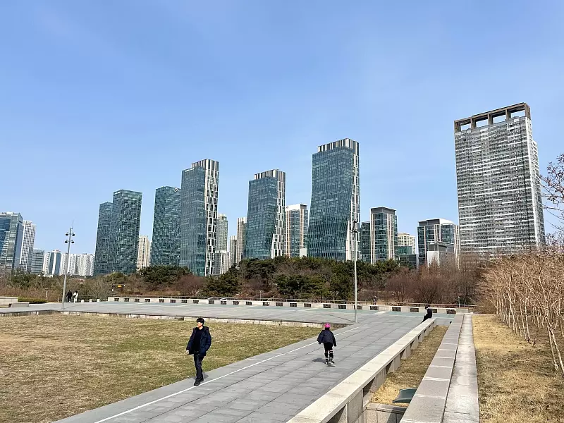 Wer Songdo besucht, findet mittlerweile eine moderne und für südkoreanische Verhältnisse extrem ruhige Stadt vor: Zwischen den futuristischen Hochhäusern sind ausladende Grünflächen angelegt, als zentrales Erholungsgebiet gilt der nach dem gleichnamigen Vorbild in Manhattan benannte Central Park. Dank großzügiger Fahrradspuren ist Songdo wohl die einzige radfreundliche Großstadt des Landes. Auch Ladestationen für Elektroautos sind omnipräsent.