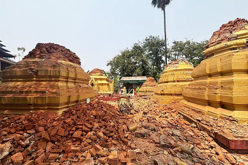 In Taungoo brach ein Kloster ein, in dem Vertriebene untergebracht waren. In Sagaing stürzte eine alte Brücke ein. Fotos zeigten zudem beschädigte historische Pagoden in Myanmars Hauptstadt Naypyidaw. Das Rote Kreuz in Myanmar spricht von verheerenden Schäden. Es bestehe große Sorge, dass Dämme am Fluss Irrawaddy brechen könnten.