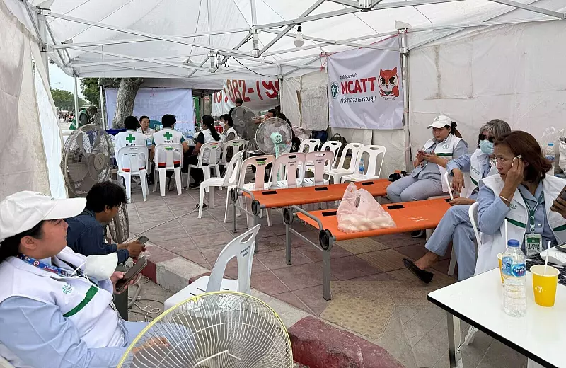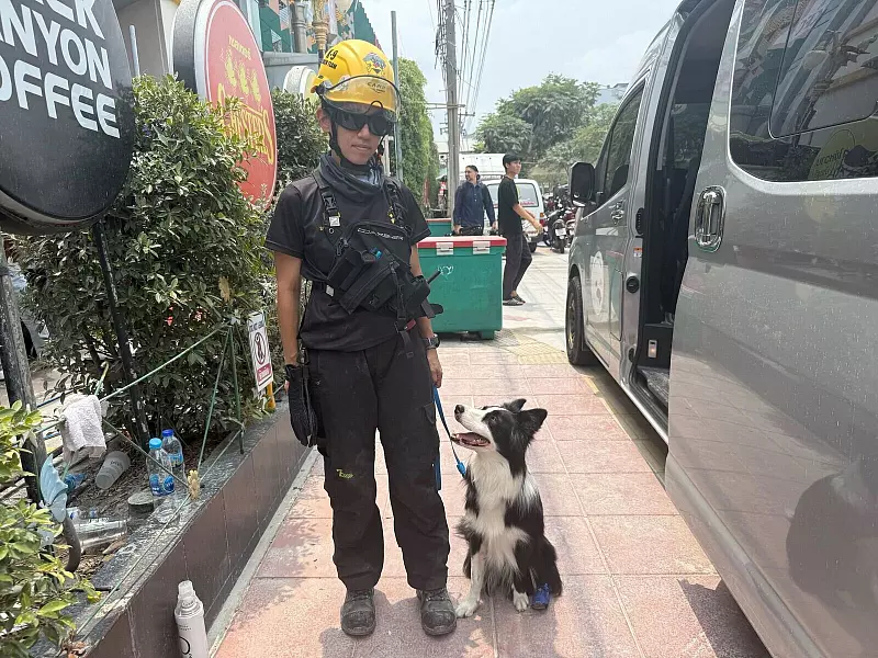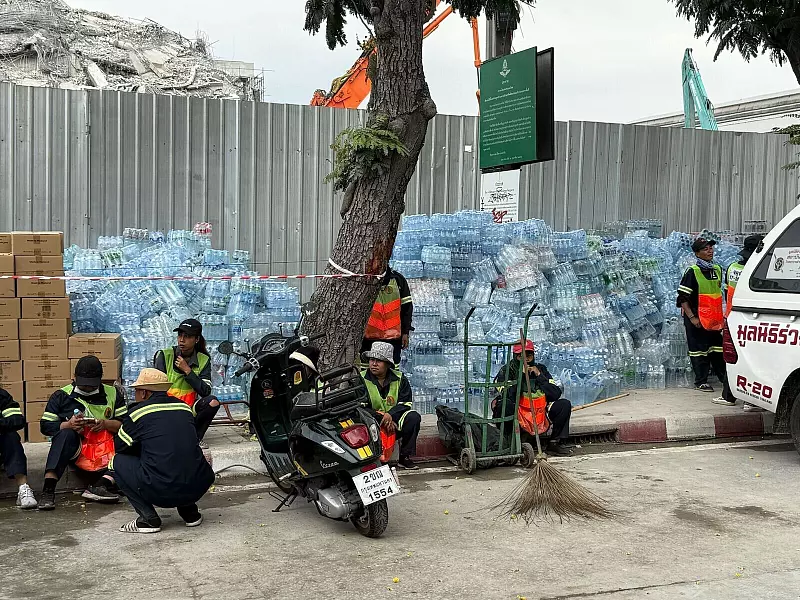 Ein paar Meter weiter geht das Leben aber schon weiter, als hätte es das Erdbeben der Stärke 7,7 mit Epizentrum nahe der Stadt Mandalay in Myanmar nicht gegeben. Touristen sind am Morgen auf dem Weg zum Chatuchak-Markt, dem größten Wochenendmarkt in Thailand und einem bekannten Besuchermagneten. Viele scheinen nicht zu wissen, dass sich nur wenige Meter entfernt gerade eine schreckliche Tragödie abspielt.
