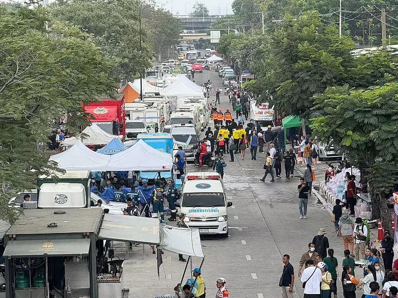 Gefühlt liegen die Werte im Stadtteil Chatuchak, wo es kaum Bäume gibt, in diesen Tagen bei weit über 40 Grad. Und die Luft scheint zu stehen, es weht kein Lüftchen. «Gestern sind hier mehrere Leute kollabiert», sagt ein Augenzeuge. Die meisten Wartenden sind patschnass geschwitzt. Einige haben sich Ventilatoren organisiert.