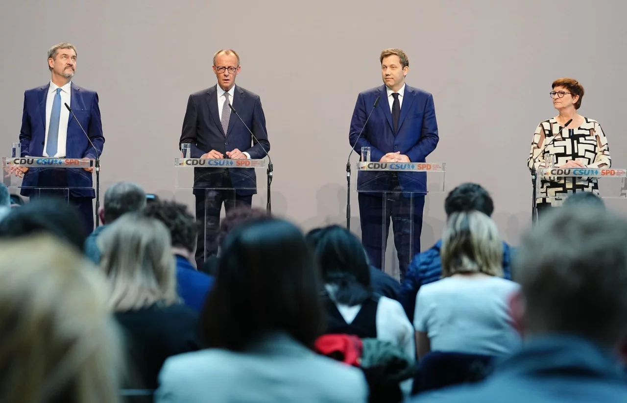 CDU-Chef Friedrich Merz hat den Menschen in Deutschland eine neue, starke Regierung versprochen. Die Einigung von CDU/CSU und SPD auf einen gemeinsamen Koalitionsvertrag sei ein «sehr starkes und klares Signal» an die Bürgerinnen und Bürger des Landes sowie an die Partner in der Europäischen Union. «Deutschland bekommt eine handlungsfähige und eine handlungsstarke Regierung», sagte Merz, den Union und SPD zum Bundeskanzler wählen wollen, in Berlin. Alle Spekulationen über die Pläne der neuen Regierung seien nur beendet. Der Koalitionsvertrag sei Ergebnis intensiver Beratungen. Das zwischen den Partnern bereits entstandene Vertrauen sei die Basis des gemeinsamen Regierens.