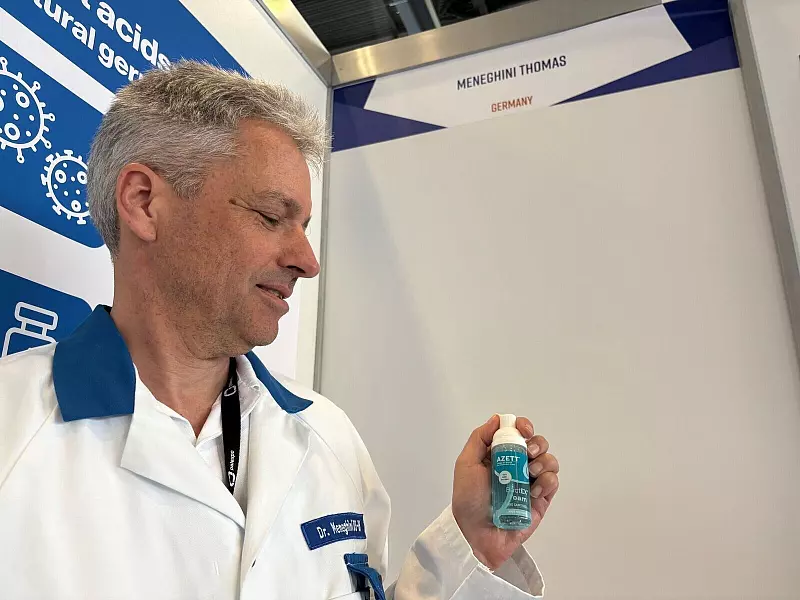 Thomas Meneghini aus Memmingen in Bayern hat eine Firma für Handreinigungsmittel. Die Coronazeit brachte ihn auf die Idee, ein Desinfektionsmittel ohne Ethanol zu entwickeln, das die Gesundheit gefährden kann. Der Chemiker experimentierte mit dem «Kampfstoff der Pflanze», wie er sagt. Pflanzen schützen sich mit Zitronensäure vor Keimen. Er fand heraus, wie sich damit innerhalb von Sekunden oder Minuten 99,999 Prozent aller Bakterien töten lassen, wie er sagt. Patente hat er in mehr als einem Dutzend Ländern, nun braucht er Lizenznehmer.