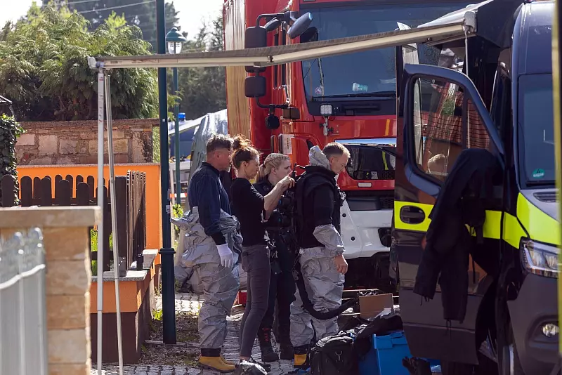 Die Szenerie erinnert an einen Endzeitfilm: Einsatzkräfte in silbernen Schutzanzügen mit Hauben über dem Kopf gehen in ein Wohnhaus im sächsischen Zeithain. Im Dachgeschoss des Elternhauses soll ein 16-Jähriger in einem selbst eingerichteten Labor tödliches Gift hergestellt und aufbewahrt haben. «Gegen den 16-Jährigen wird wegen des Verstoßes gegen das Kriegswaffengesetz ermittelt», sagte Kay Anders vom sächsischen Landeskriminalamt (LKA).