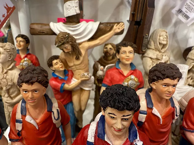 Was nichts daran ändert, dass viele in Assisi mit dem neuen Heiligen schon gutes Geld verdienen. In den Souvenirgeschäften ist so gut wie alles im Angebot: Jutebeutel, T-Shirts, Medaillons, Anhänger, Rosenkränze, sogar Kühlschrankmagneten. Auch im Verkaufsraum der Kirche, in der Acutis nun liegt, gibt es Figuren von ihm. Der Rektor der Gemeinde, Franziskanerpater Marco Gaballo, sagt: «Die Leute wollen etwas haben, an das sie sich erinnern können. Dann ist das in Ordnung für mich.»