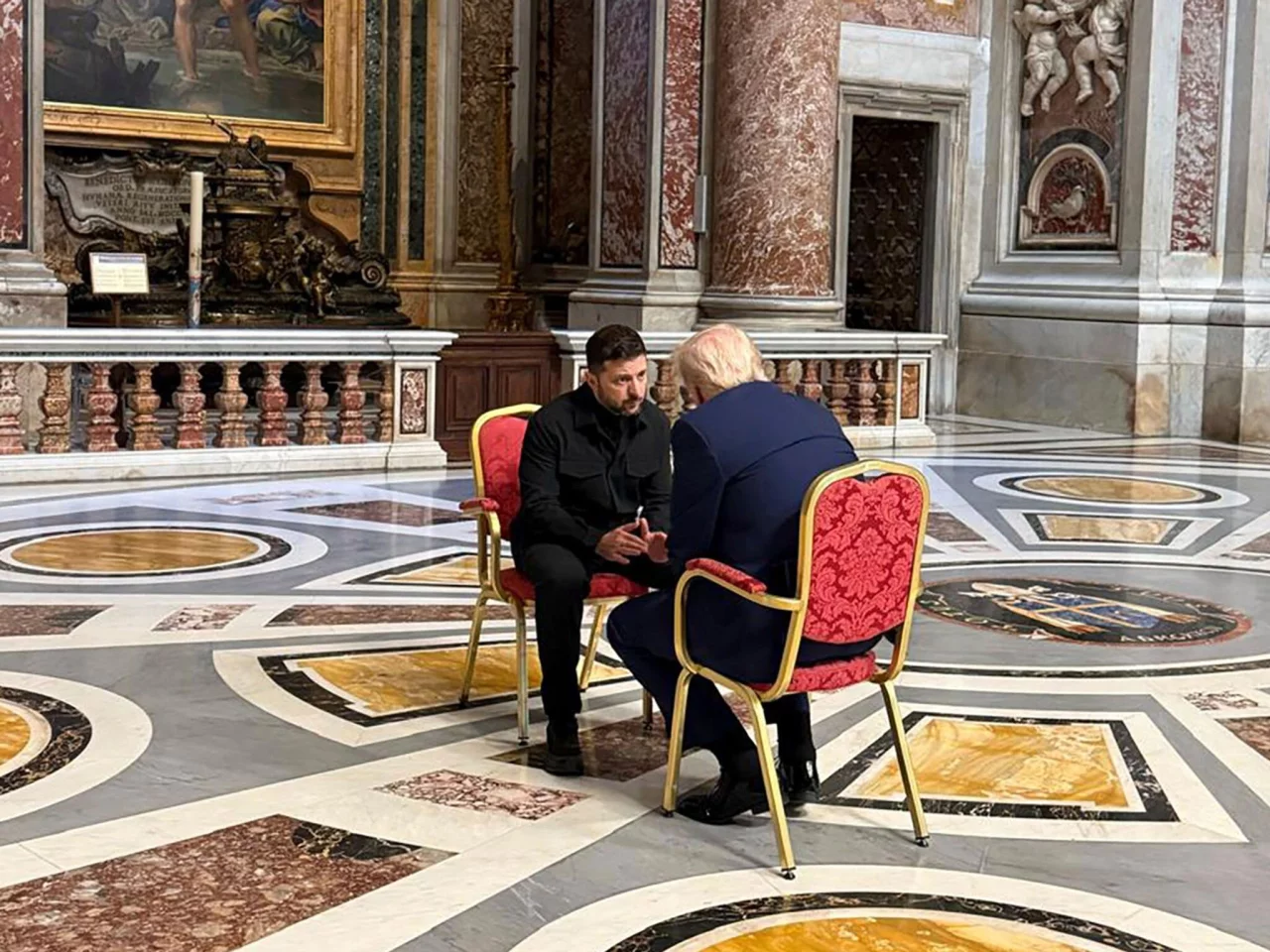 Es ist wohl DAS Gespräch des Tages. US-Präsident Donald Trump und der ukrainische Staatschef Wolodymyr Selenskyj führen abseits der Trauerfeier ein Gespräch. Es war das erste Treffen der beiden Staatsmänner nach einem Eklat im Weißen Haus Ende Februar.