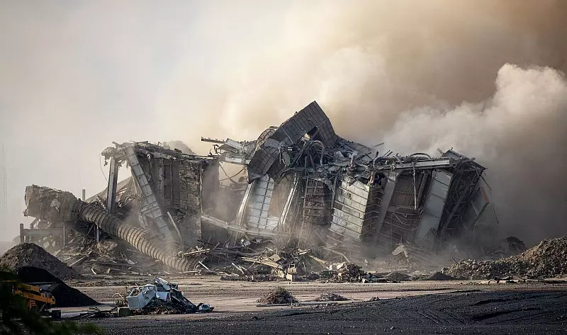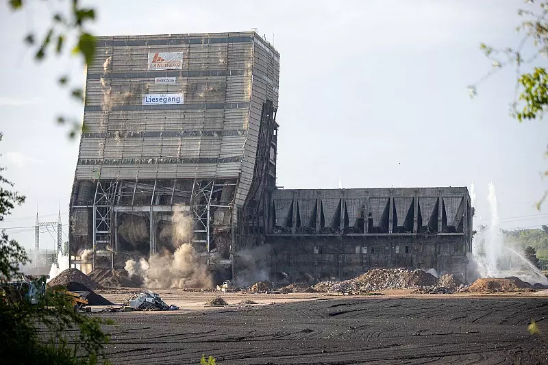 Für die Aktion waren zuvor rund 300 Kilogramm Sprengstoff verbaut worden. Die Gebäude mussten umgelegt werden, weil man sie liegend besser zerlegen kann, wie der Sprecher sagte. Das ehemalige Kraftwerk wird seit Anfang 2023 rückgebaut. Es war Ende 2017 endgültig stillgelegt worden.