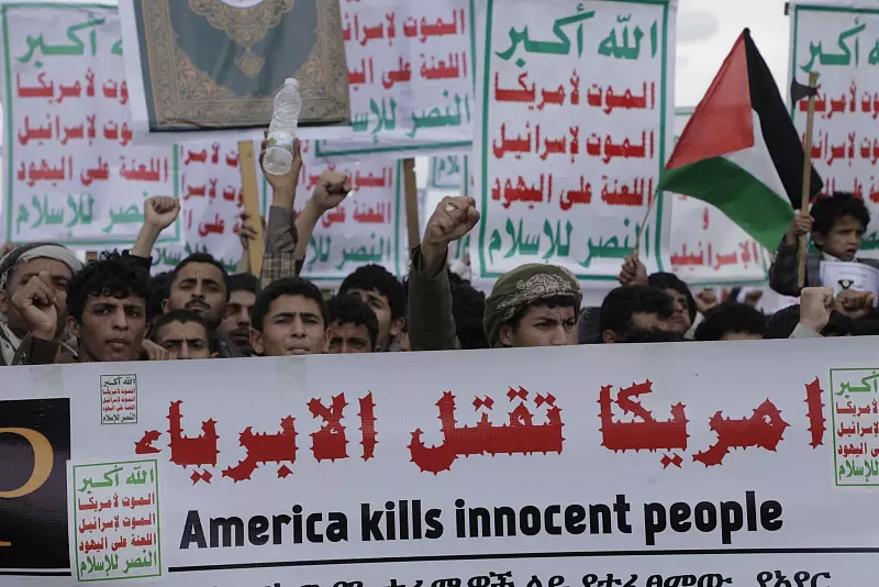 Seitdem Israels Armee die Angriffe im Gazastreifen am 18. März wieder aufgenommen hat, feuert auch die Huthi-Miliz aus Solidarität mit der islamistischen Hamas wieder regelmäßig Geschosse Richtung Israel. Das Motto der Huthi lautet: «Gott ist groß, Tod Amerika, Tod Israel, Fluch über die Juden, Sieg dem Islam.»