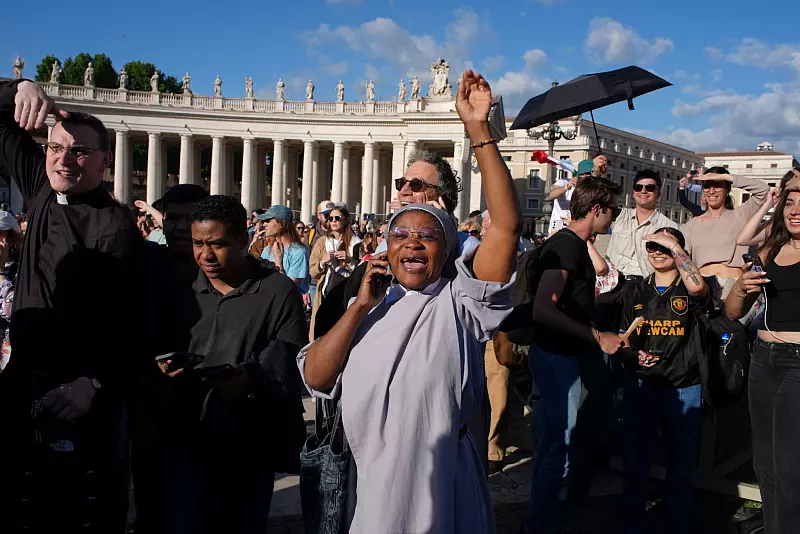 Die Menschen schwenken Fahnen, hüpfen wie Kinder auf und ab, singen und lachen. Manche rufen ihre Lieben zu Hause an, in allen möglichen Sprachen. «Welche Emotion, den weißen Rauch live zu sehen!», sagt eine Italienerin mit ihrem Mann am Telefon und nennt es «bellissimo» - sehr schön! Andere müssen erst einmal auf ihrem Handy nachschauen, woher das neue Kirchenoberhaupt überhaupt kommt. Eine Italienerin vermutet einen Franzosen hinter Prevost.