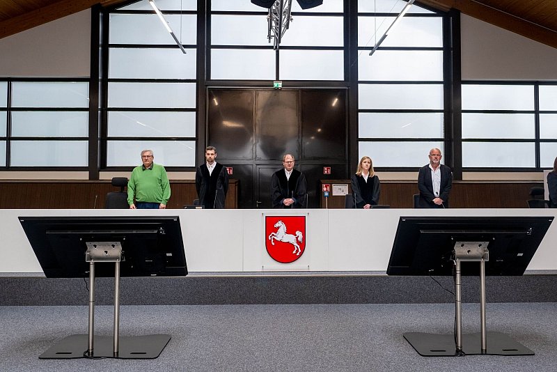 Das Landgericht Verden hat das großzügige Gelände für rund 3,6 Millionen Euro gemietet und umbauen lassen. Die Kosten für den Umbau übernahm der Vermieter. Dass der Reithof eine neue Funktion hat, ist sichtbar. Sicherheitszäune, Stacheldraht und Sichtschutz sichern die Einfahrten, Kameras überwachen das Gelände, zahlreiche Polizisten und Polizistinnen sind vor Ort.