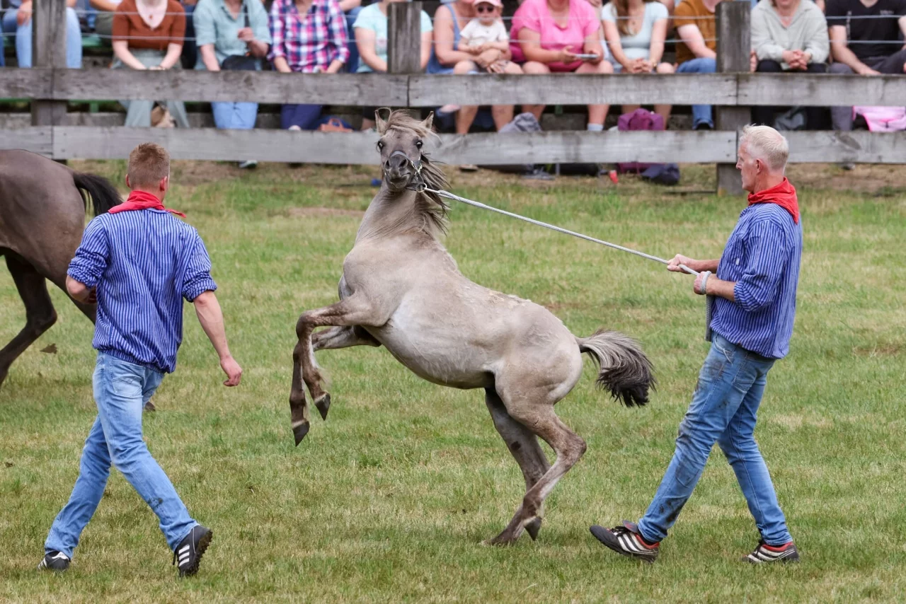 Die jungen Hengste werden regelmäßig entnommen, weil sich die Tiere bei Rangkämpfen sonst verletzen könnten und die Gruppe für das Gelände zu groß würde. Das Spektakel am letzten Mai-Wochenende zieht Jahr für Jahr Tausende Pferdefreunde aus ganz Deutschland und den Nachbarländern ins Münsterland.