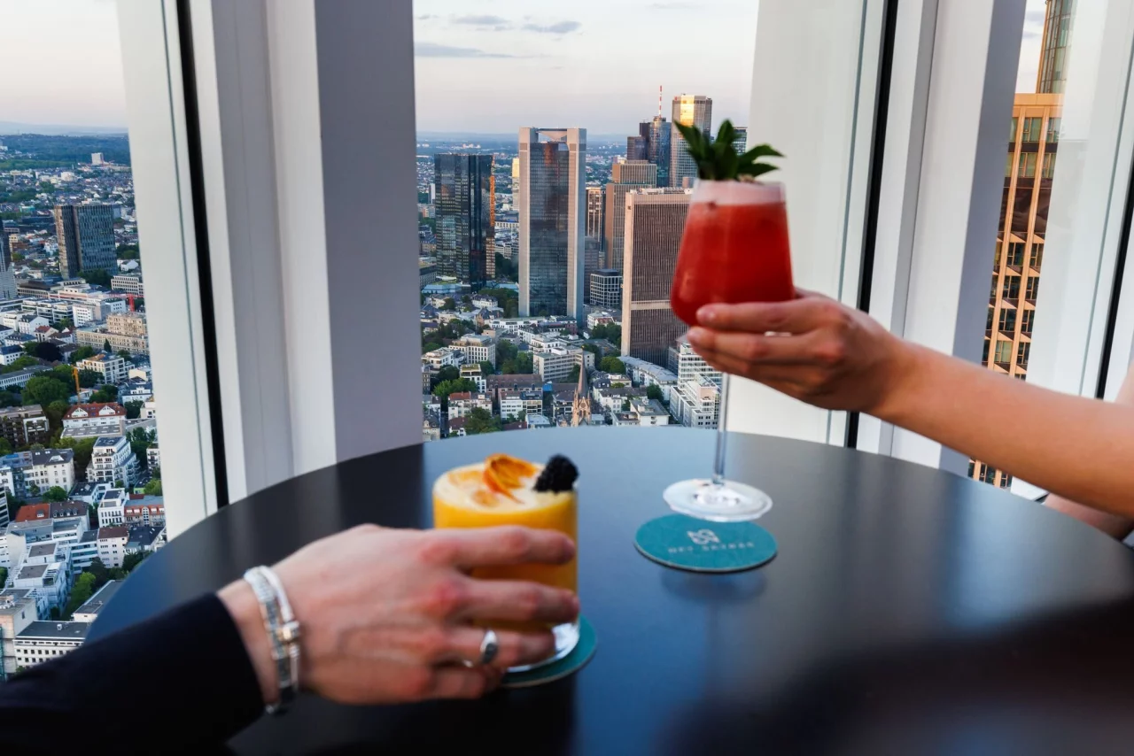 Die Bar im Hochhaus «Maintower» im Bankenviertel hingegen liegt eigentlich ein paar Meter und um diverse Stockwerke höher: Die Panoramabar unterhalb der Aussichtsplattform befindet sich im 53. Stock und auf 187 Metern Höhe, die «NFT Skybar» kommt im 47. Stockwerk nur auf 185 Meter.
