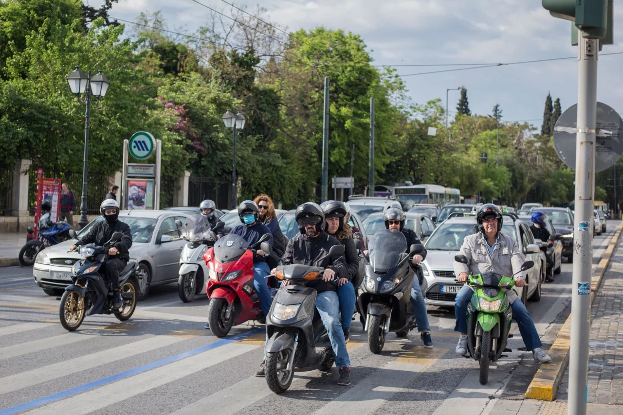 Dieselben hohen Strafen gelten künftig für Motorradfahrer ohne Helm - und auch für Personen, die ohne Helm auf dem Sozius mitfahren. Laut griechischem Verkehrsverband ist jeder fünfte Motorradfahrer ohne Helm unterwegs. Der Anteil der Motorradfahrer unter den Verkehrstoten liegt bei 38 Prozent, während es im EU-Durchschnitt 18 Prozent sind. Mehr als zwei Drittel der tödlich verunglückten Motorradfahrer trugen keinen Helm.