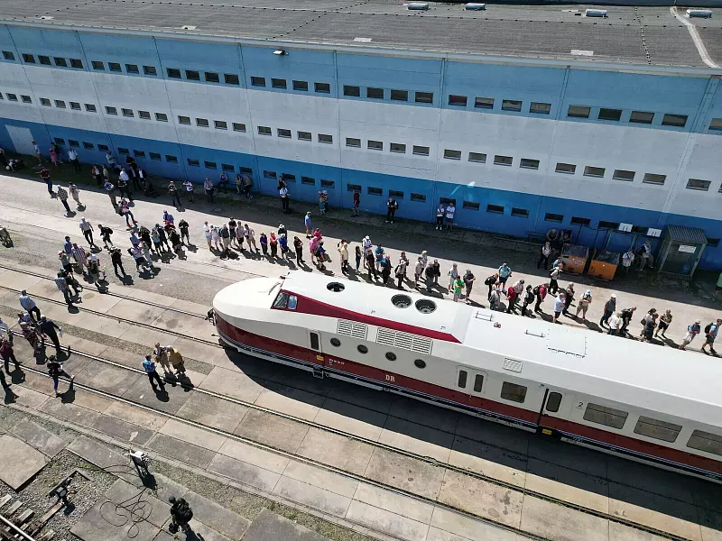 Bei einem Tag der offenen Tür im Unternehmen VIS Verkehrs Industrie Systeme GmbH in Halberstadt wurde erstmals nach der Aufarbeitung auch der Innenbereich des Zuges präsentiert. Es bildeten sich lange Schlangen. Zum Tag waren viele Menschen auch aus anderen Regionen Deutschlands angereist.