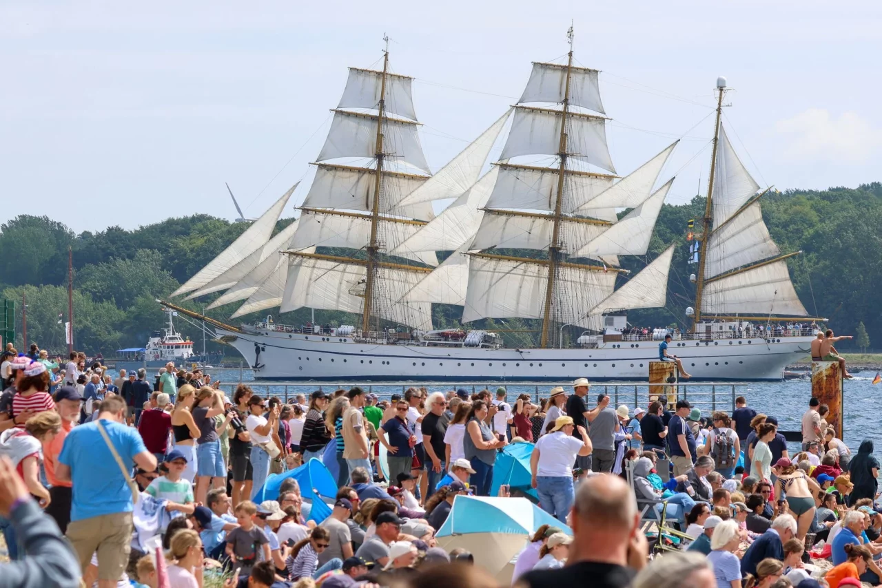 Hinter dem deutschen Segelschulschiff «Gorch Fock» formierten sich auf der Förde wieder mehr als 120 Schiffe, darunter 59 Traditionssegler. Mit dabei waren neben dem Dreimaster der Marine unter anderem die «Alexander von Humboldt II», die «Gulden Leeuw», die «Thor Heyerdahl» und die «Roald Amundsen».